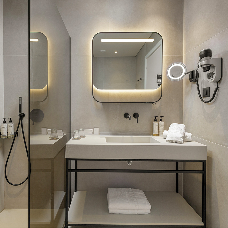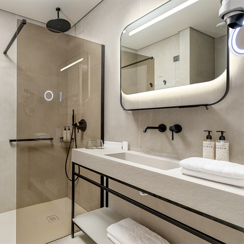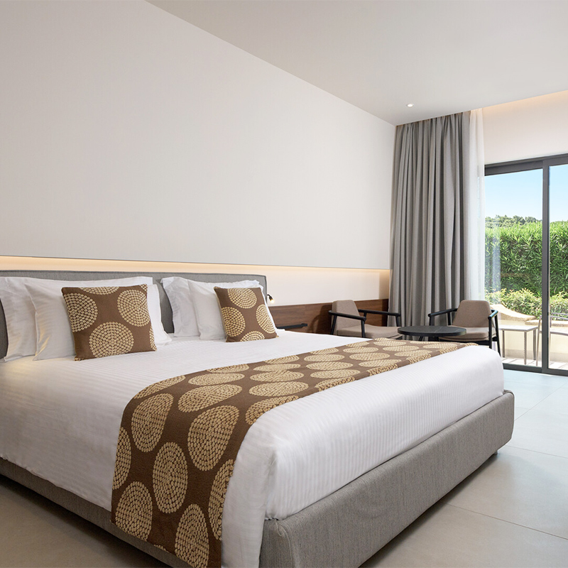 Elle est équipée de : 1 lit double king-size, canapé, balcon ou terrasse aménagé, climatisation, télévision, téléphone, mini réfrigérateur, coffre-fort, machine à café/thé, Wi-Fi, salle de bains avec baignoire, sèche-cheveux, peignoirs et chaussons.